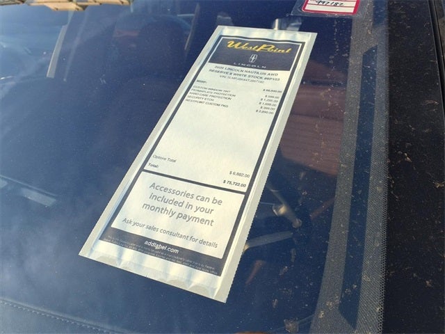 West Point Lincoln Kirkwood is honored to offer this good-looking 2026 Lincoln Nautilus Reserve in White Platinum Clearcoat Metallic with Hot Chocolate interior. Well equipped with Equipment Group 202A Reserve II (110V Power Converter, Auto Air Refresh, BlueCruise Equipped (4-Years Included), Digital Scent, Hands-Free Power Liftgate, Lincoln Digital Experience, Panoramic Vista Roof with Powershade, Premium Leather Trimmed Captain's Chairs, Radio: AM/FM Revel Audio System, Rear Heated Seats with Switch Control, and SiriusXM with 360L), Lincoln Connectivity Package, 10 Speakers, 4-Wheel Disc Brakes, ABS brakes, Adaptive suspension, Air Conditioning, Alloy wheels, AM/FM radio: SiriusXM with 360L, Apple CarPlay/Android Auto, Auto High-beam Headlights, Auto tilt-away steering wheel, Auto-dimming Rear-View mirror, Automatic temperature control, Brake assist, Bumpers: body-color, Compass, Delay-off headlights, Driver door bin, Driver vanity mirror, Dual front impact airbags, Dual front side impact airbags, Electronic Stability Control, Emergency communication system: 911 Assist, Exterior Parking Camera Rear, Four wheel independent suspension, Front anti-roll bar, Front Bucket Seats, Front Center Armrest w/Storage, Front dual zone A/C, Front reading lights, Fully automatic headlights, Garage door transmitter, Heated door mirrors, Heated front seats, Heated steering wheel, Illuminated entry, Knee airbag, Leather steering wheel, Low tire pressure warning, Memory seat, Navigation System, Occupant sensing airbag, Outside temperature display, Overhead airbag, Overhead console, Panic alarm, Passenger door bin, Passenger vanity mirror, Power door mirrors, Power driver seat, Power Liftgate, Power passenger seat, Power steering, Power windows, Radio data system, Rain sensing wipers, Rear anti-roll bar, Rear reading lights, Rear seat center armrest, Rear window defroster, Rear window wiper, Remote keyless entry, Security system, Speed control, Speed-sensing steering, Speed-Sensitive Wipers, Split folding rear seat, Spoiler, Steering wheel memory, Steering wheel mounted audio controls, Tachometer, Telescoping steering wheel, Tilt steering wheel, Traction control, Trip computer, Turn signal indicator mirrors, Variably intermittent wipers, and Ventilated front seats.