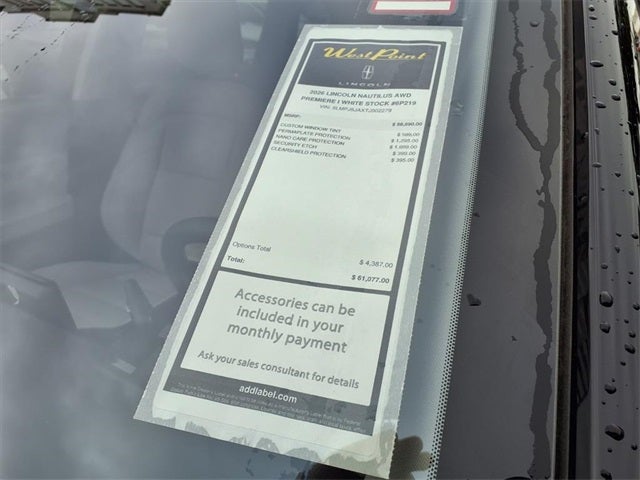 West Point Lincoln Kirkwood is proud to offer this wonderful 2026 Lincoln Nautilus Premiere in White Platinum Clearcoat Metallic with Medium Light Space Gray interior. Well equipped with Equipment Group 101A (19 Bright Machined Aluminum Wheels, BlueCruise Equipped (4-Years Included), Lincoln Digital Experience, Lincoln Soft Touch Heated Front Captain's Chairs, Radio: AM/FM Premium Audio, and SiriusXM with 360L), Lincoln Connectivity Package, 10 Speakers, 4-Wheel Disc Brakes, ABS brakes, Air Conditioning, Alloy wheels, AM/FM radio: SiriusXM with 360L, Apple CarPlay/Android Auto, Auto High-beam Headlights, Auto tilt-away steering wheel, Auto-dimming Rear-View mirror, Automatic temperature control, Brake assist, Bumpers: body-color, Compass, Delay-off headlights, Driver door bin, Driver vanity mirror, Dual front impact airbags, Dual front side impact airbags, Electronic Stability Control, Emergency communication system: 911 Assist, Exterior Parking Camera Rear, Four wheel independent suspension, Front anti-roll bar, Front Bucket Seats, Front Center Armrest w/Storage, Front dual zone A/C, Front reading lights, Fully automatic headlights, Garage door transmitter, Heated door mirrors, Heated front seats, Heated steering wheel, Illuminated entry, Knee airbag, Leather steering wheel, Low tire pressure warning, Memory seat, Navigation System, Occupant sensing airbag, Outside temperature display, Overhead airbag, Overhead console, Panic alarm, Passenger door bin, Passenger vanity mirror, Power door mirrors, Power driver seat, Power Liftgate, Power passenger seat, Power steering, Power windows, Radio data system, Rain sensing wipers, Rear anti-roll bar, Rear reading lights, Rear seat center armrest, Rear window defroster, Rear window wiper, Remote keyless entry, Security system, Speed control, Speed-sensing steering, Speed-Sensitive Wipers, Split folding rear seat, Spoiler, Steering wheel memory, Steering wheel mounted audio controls, Tachometer, Telescoping steering wheel, Tilt steering wheel, Traction control, Trip computer, Turn signal indicator mirrors, and Variably intermittent wipers.