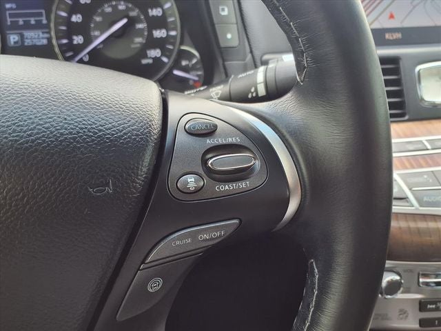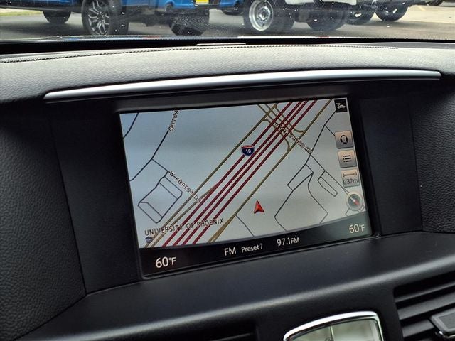 - Radio: AM/FM/CD w/INFINITI InTouch Navigation -inc: MP3 playback capability, Radio Data System (RDS), speed-sensitive volume control, 8" VGA LCD color touch-screen display, lane guidance, 3-D building graphics, INFINITI InTouch services select w/4 year complimentary trial access to convenience services, INFINITI InTouch services premier w/12 month complimentary trial access to safety, security and convenience services, INFINITI voice recognition for audio, navigation and vehicle information systems, SiriusXM satellite radio w/90 day complimentary trial access, SiriusXM Traffic w/real-time traffic information w/4 year complimentary trial access, SiriusXM Travel Link w/4 year complimentary trial access to fuel prices, weather, movie listings, stock prices and sports scores, streaming audio via Bluetooth wireless technology, USB Connection port for iPod interface and other compatible devices, steering wheel-mounted audio controls, Active Noise Control (ANC) and Bluetooth hands-free phone system