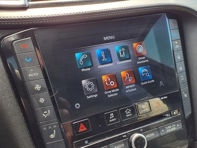 - Radio: AM/FM/CD Audio System -inc: 6 speakers, 4 USB connection ports, Apple CarPlay and Android Auto, dual display system w/upper 8" and lower 7" HD touch screens, INFINITI voice recognition, HD Radio technology, SiriusXM radio w/advanced audio features w/3-month complimentary trial, streaming audio via Bluetooth, Bluetooth hands-free phone system, Siri eyes free, hands-free text messaging assistant and active noise cancellation