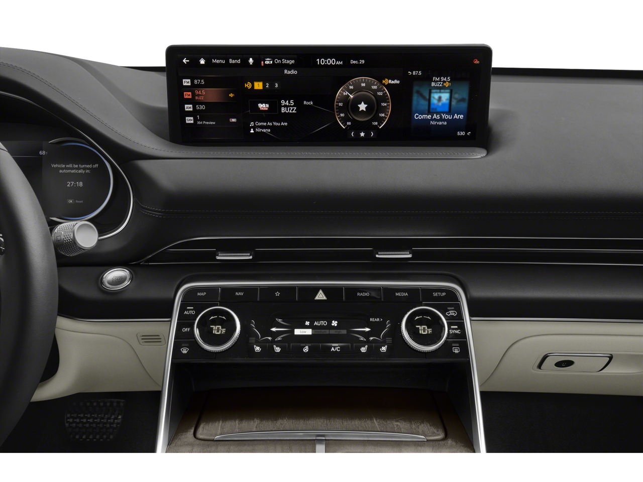 - Radio: AM/FM/SiriusXM/HD Premium Audio System -inc: 6-channel internal amplifier, integrated navigation, 14.5" HD LCD screen, Apple CarPlay and Android Auto, Bluetooth® hands-free phone system w/audio streaming, steering wheel controls, USB and Genesis Connected Services